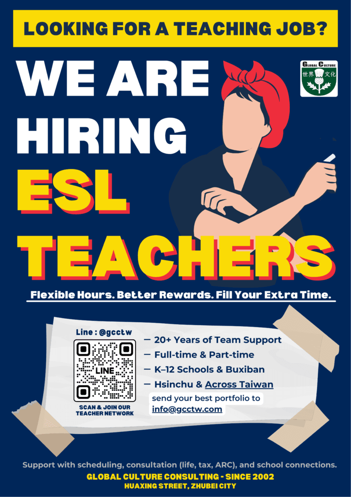 Global Culture has been supporting teachers in Taiwan since 2002.With 20+ years of experience, we connect teachers with schools and provide guidance for life, work, and growth abroad.